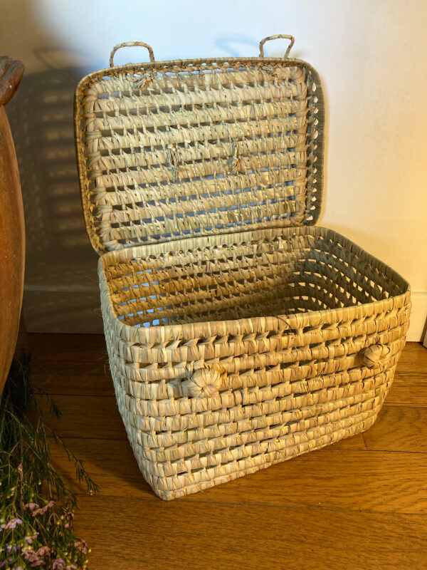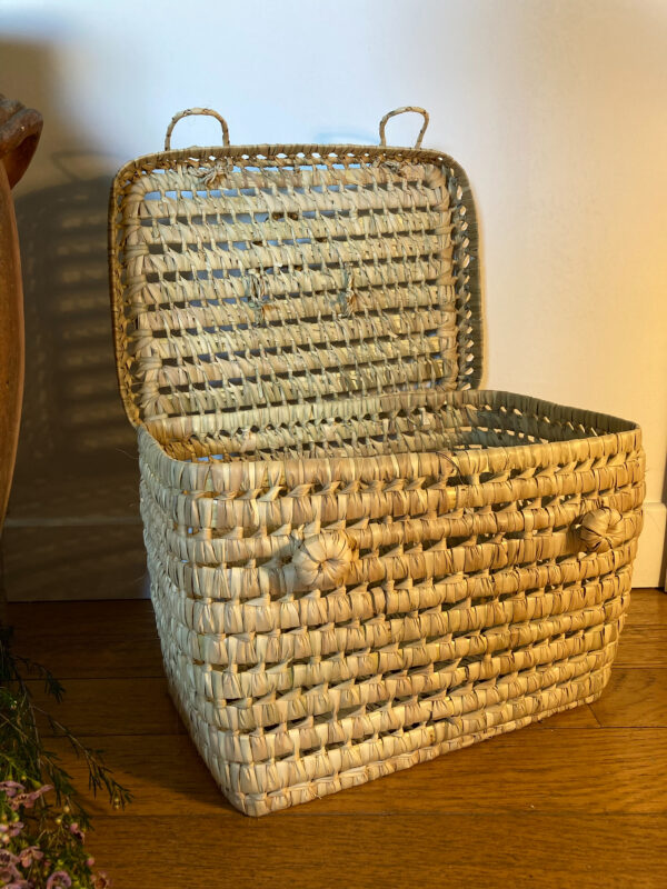 Malle en feuilles de palmier tressées à la main